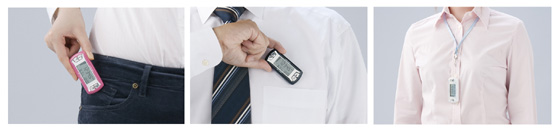 ポケットに入れたり、首からさげておくだけで活動量を正確に測定します。