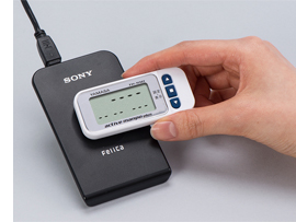 - ・FeliCaリーダーライターにかざせば、歩行データを